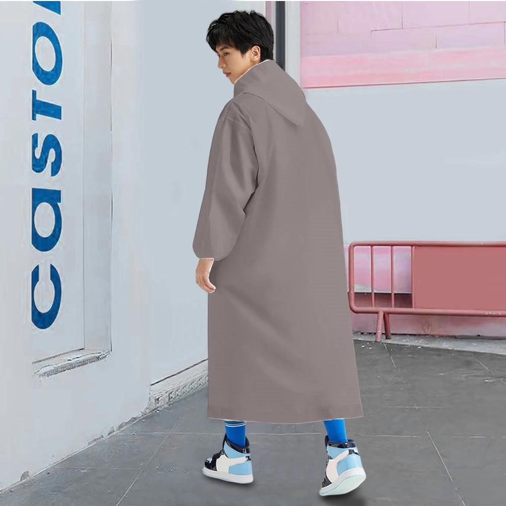 1. Enhanced Protection With Cinch Cords: Our adult long raincoat features adjustable drawstrings at the hood and wrists, ensuring a snug fit that keeps rain at bay. This tailored approach prevents water ingress and guarantees you stay protected during downpours.