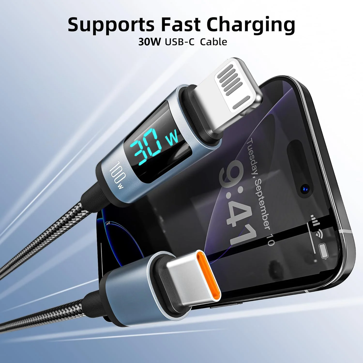 【Premium& Durable】The usb type c to lightning cable fast charger was tested withstand over 15,000 bends. The cable has extremely high resistant to splitting and breakage.