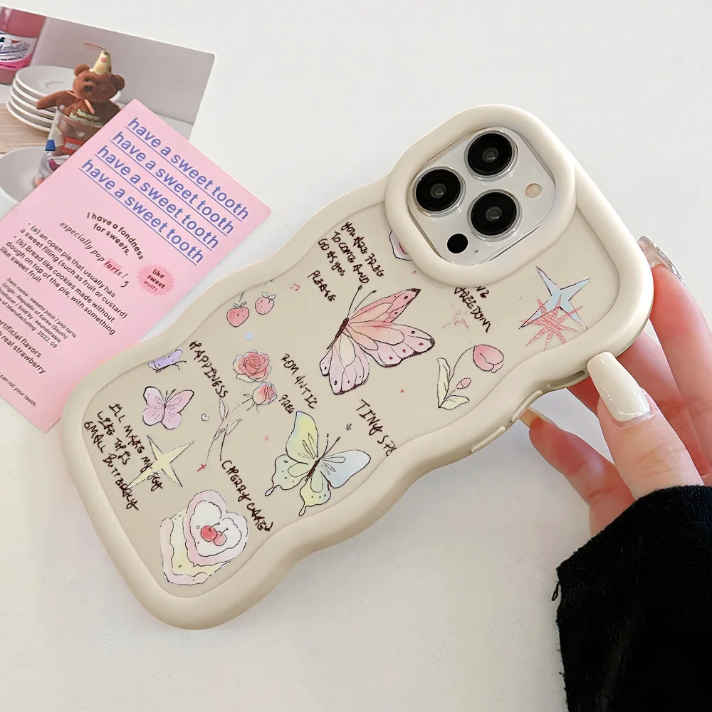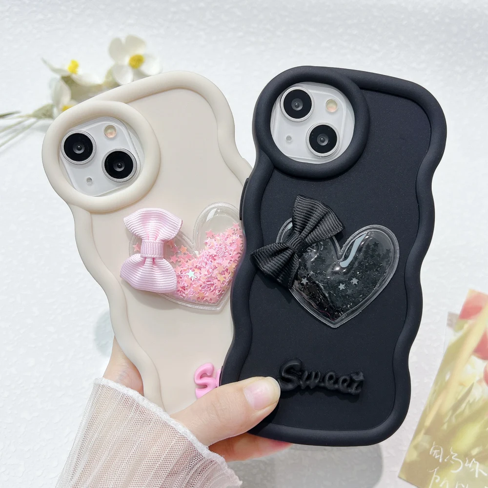 3D DIY Wave Phone Cases For iPhone 15 Case iPhone 13 Pro Max 14 16 11 12 Xs X XR 6 7 8 Plus SE 2022 Korea Cute Bear Soft Cover