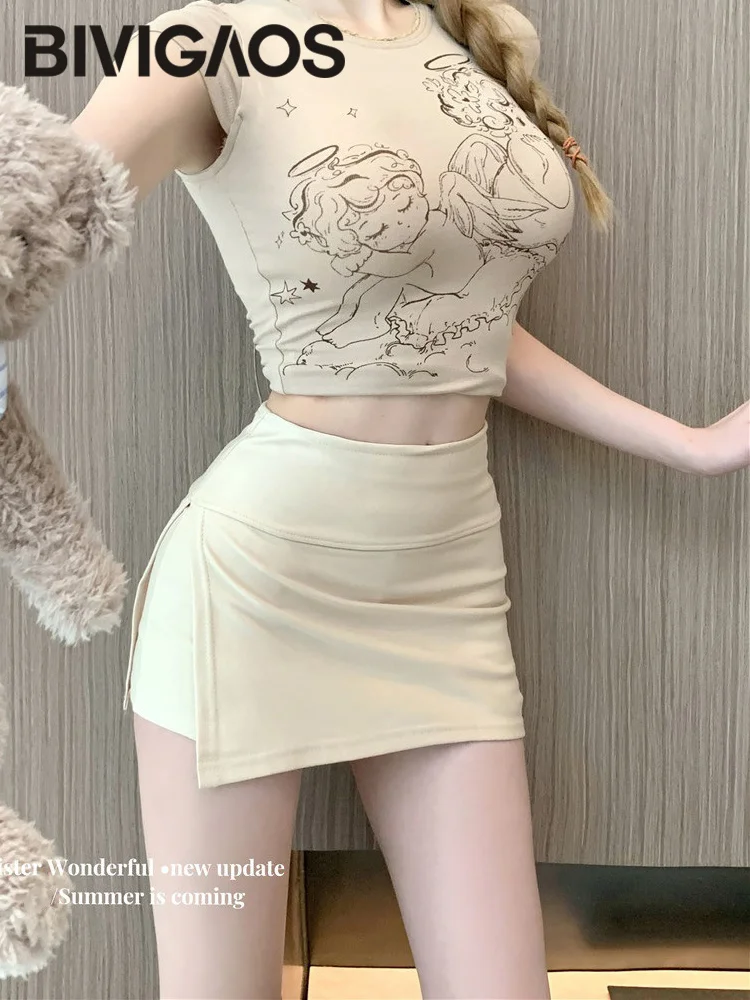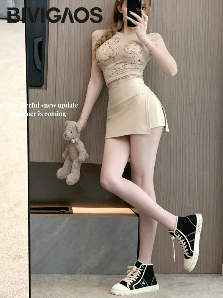 Home - Skirts & Skorts - BIVIGAOS Slit Package Hip Skirt Shorts Women Sexy Fake Two-Piece Yoga Mini Short Skirts Hot Girl A-Line Sport Fitness Culottes