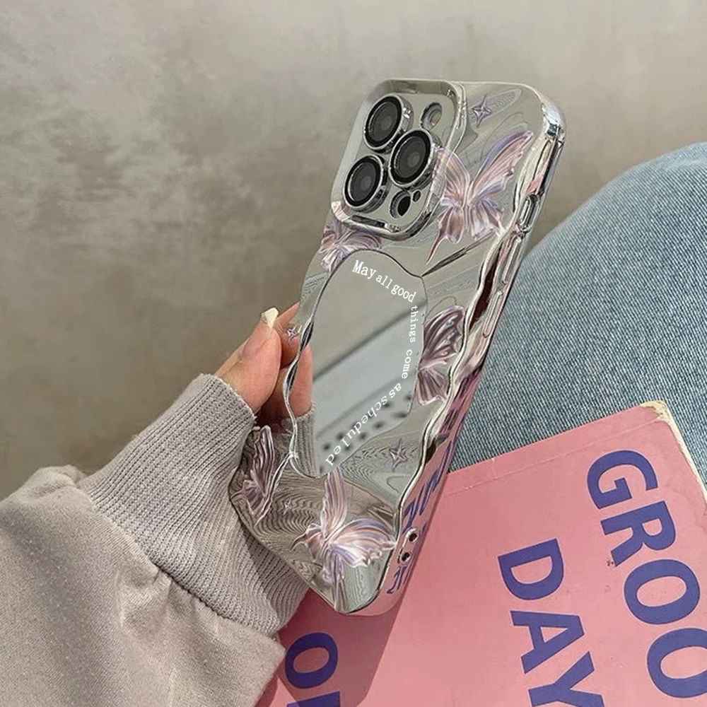 Be the first to review “Electroplated Mirror Pink Butterfly Phone Case For iPhone 16 13 11 12 14 15 Pro Max Luxury Plating Wavy Shockproof Makeup Cover” Cancel reply