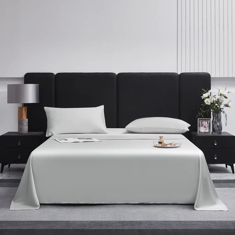 Luxury Grey Natural Bamboo Lyocell Flat Top Sheet,Silk-Like Cooling Mattress Cover Bed Bedspread Linens US Queen 228*259cm*1pc