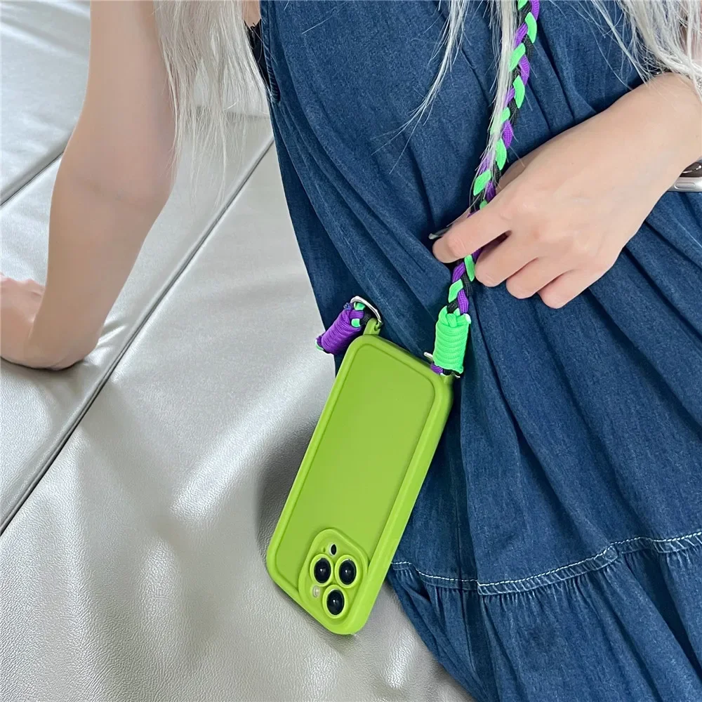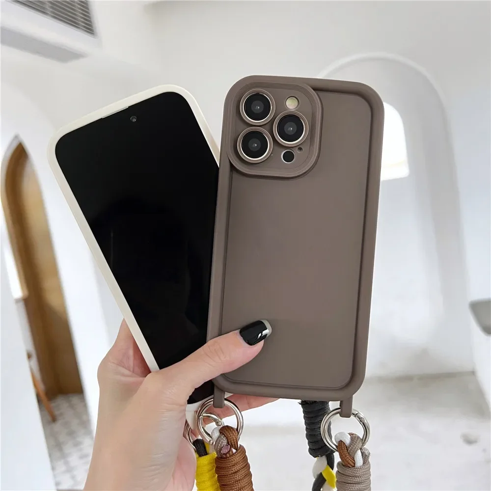 Matte Liquid Silicone Crossbody Necklace Cord Lanyard Soft Case For iPhone 14 Pro Max 15 16 13 12 11 XS XR Shockproof Cover
