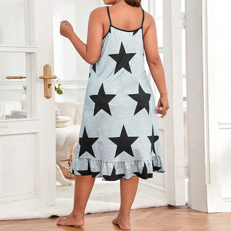 Be the first to review “Spring and Summer European and American Plus Size Women Pajamas Homewear Suspenders in the Skirt Printed Nightgown Sleepwear”