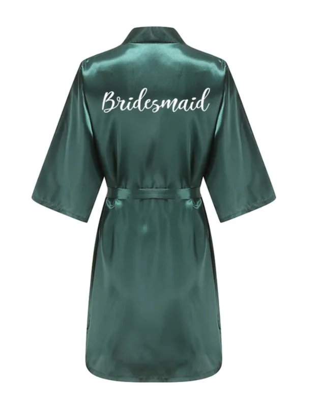 1 review for Wedding Party Team Bride Robe With White Letters Kimono Satin Pajamas Bridesmaid Bathrobe YE6522