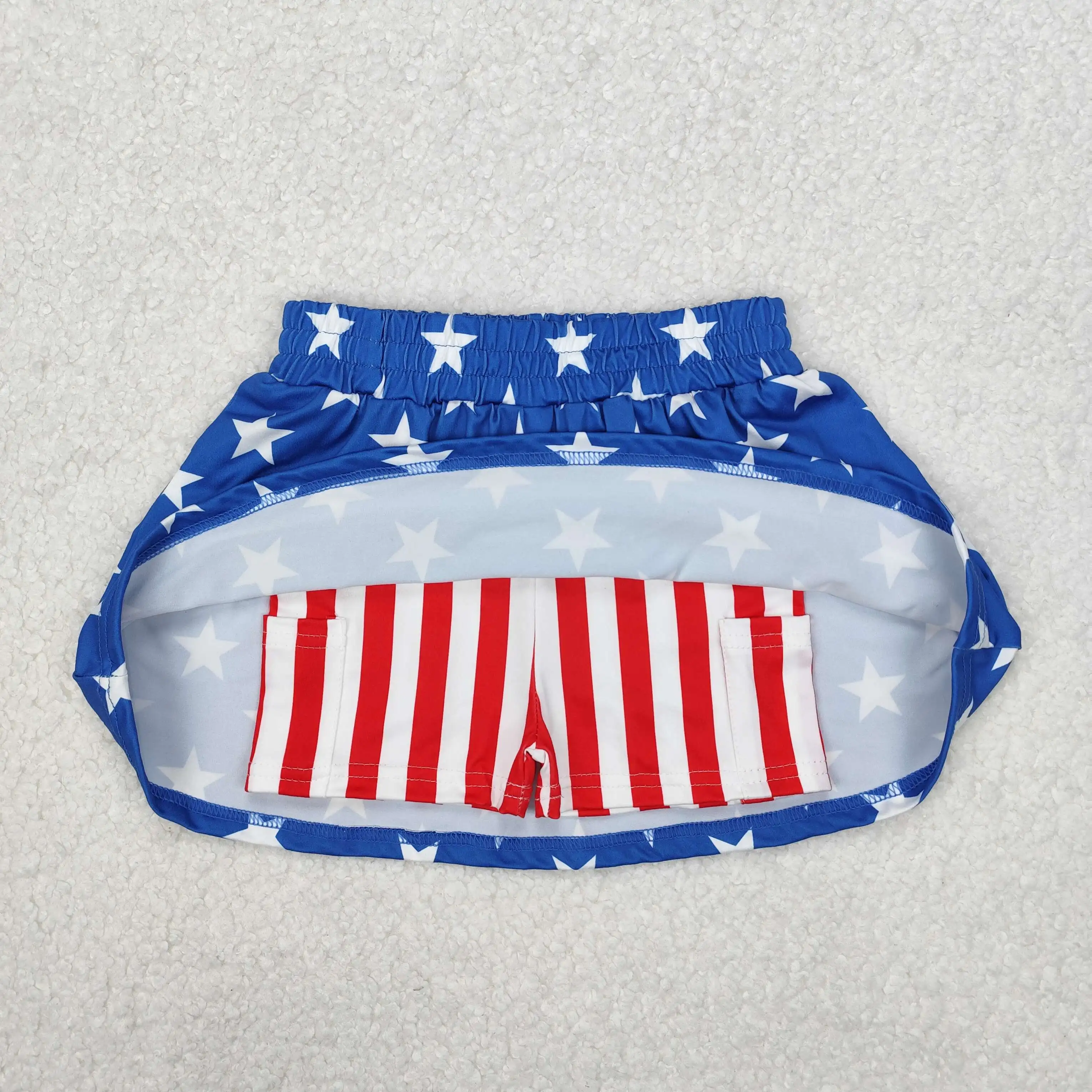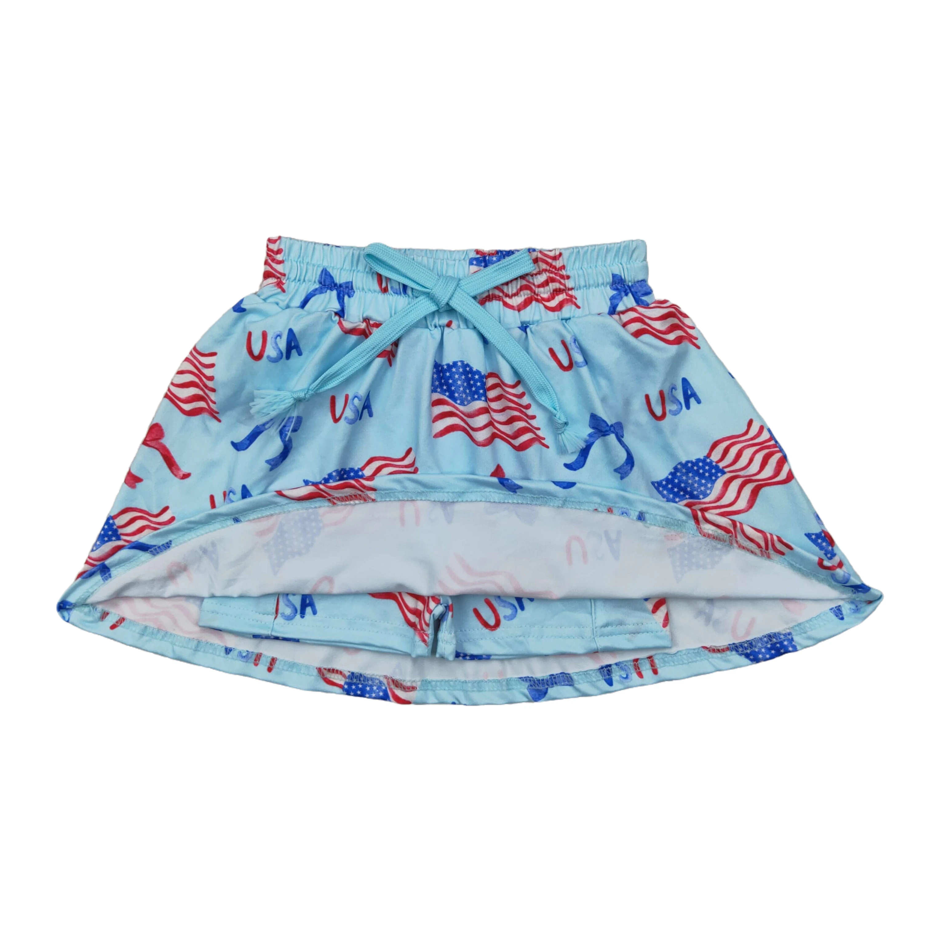 Wholesale Boutique Baby Girls July 4th Toddler Flags Bows Infant Summer Pocket Shorts Skort Skirts Bottom Kids Children Clothes