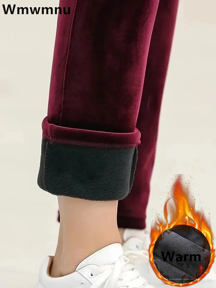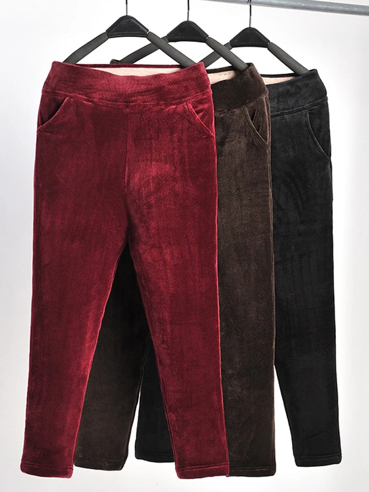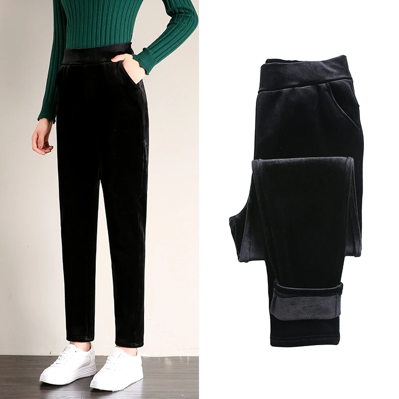 korean large size velvet Ankle-Length Pants | snow wear mom plus size spodnie |