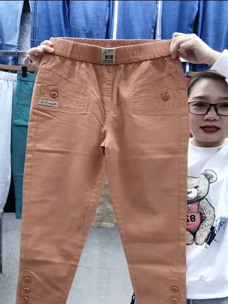 Home - Dress Pants & Trousers - Women Cotton Linen Harun Pants Summer Loose New 2023 Ladies High Waist Versatile Thin Slim Casual Pants Female Nine-Point Pants