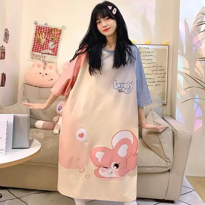 Women Pajamas Dress Round Neck Easy to Clean Large Size Can Be Worn Outside Student Homewear Medium Long Trousers Short SleeveWomen Pajamas Dress Round Neck Easy to Clean Large Size Can Be Worn Outside Student Homewear Medium Long Trousers Short SleeveWomen Pajamas Dress Round Neck Easy to Clean Large Size Can Be Worn Outside Student Homewear Medium Long Trousers Short SleeveWomen Pajamas Dress Round Neck Easy to Clean Large Size Can Be Worn Outside Student Homewear Medium Long Trousers Short Sleeve