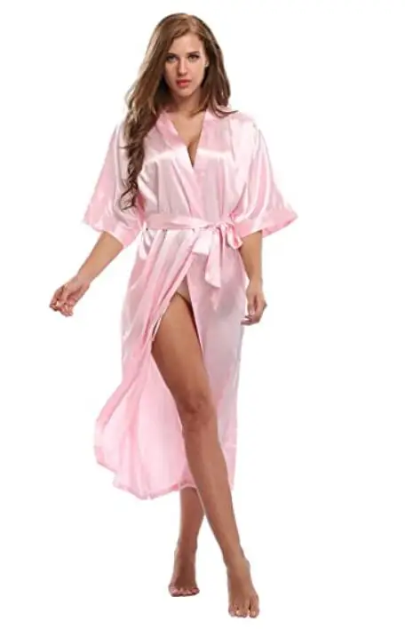 2 reviews for Women Silk Satin Long Wedding Bride Bridesmaid Robe Kimono Robe Feminino Bath Robe Large Size XXXL Peignoir Femme Sexy Bathrobe