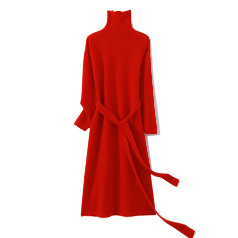 Round Neck Cashmere Dress Women’s Long Pullover Sweater Autumn And Winter New Knitted Knee-Length Pure Wool Dress