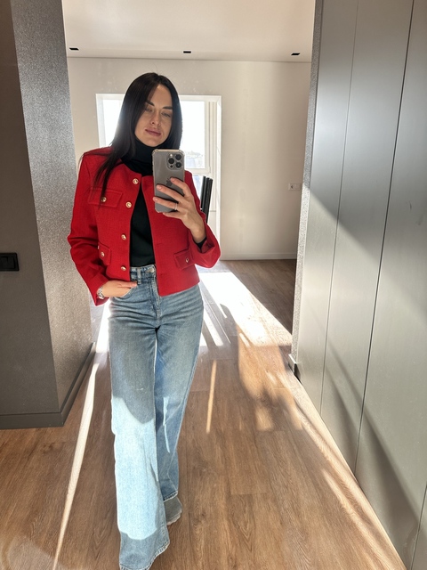 Chic quality jacket! Color deep red👍For a height of 165 cm, O-83, OT-68, OB-91 size s sat down perfectly! Take it, don’t burn it!